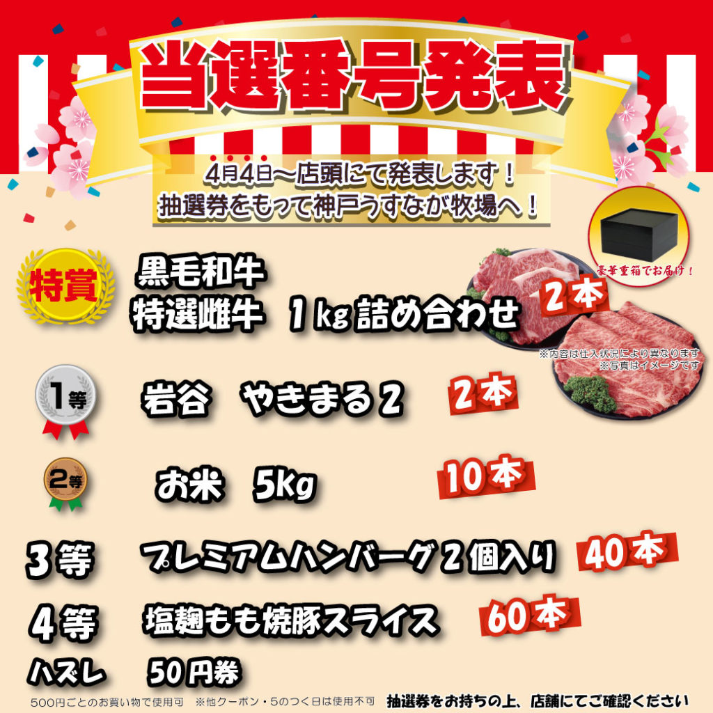 当選番号は店頭でチェック!