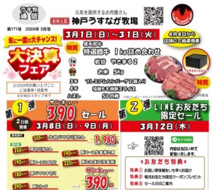 神戸うすなが牧場です🐄 少しずつ春の気配を感じる季節になりましたが、朝晩はまだ冷え込む日もありますね。インフルエンザや花粉症対策と…体調管理にはお気を付けください。 春の行楽やお祝いごとも増える3月。すき焼き・しゃぶしゃ […]