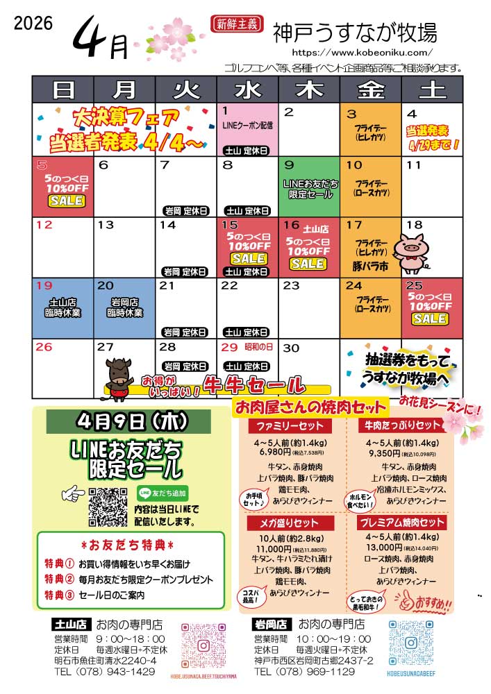 ・岩岡店 4/20(月)は臨時休業いたします。翌日火曜日は、定休日のため2日連続のお休みです。