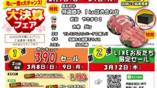 3月8日(日)・9日(月) 390円均一 肉の日セール